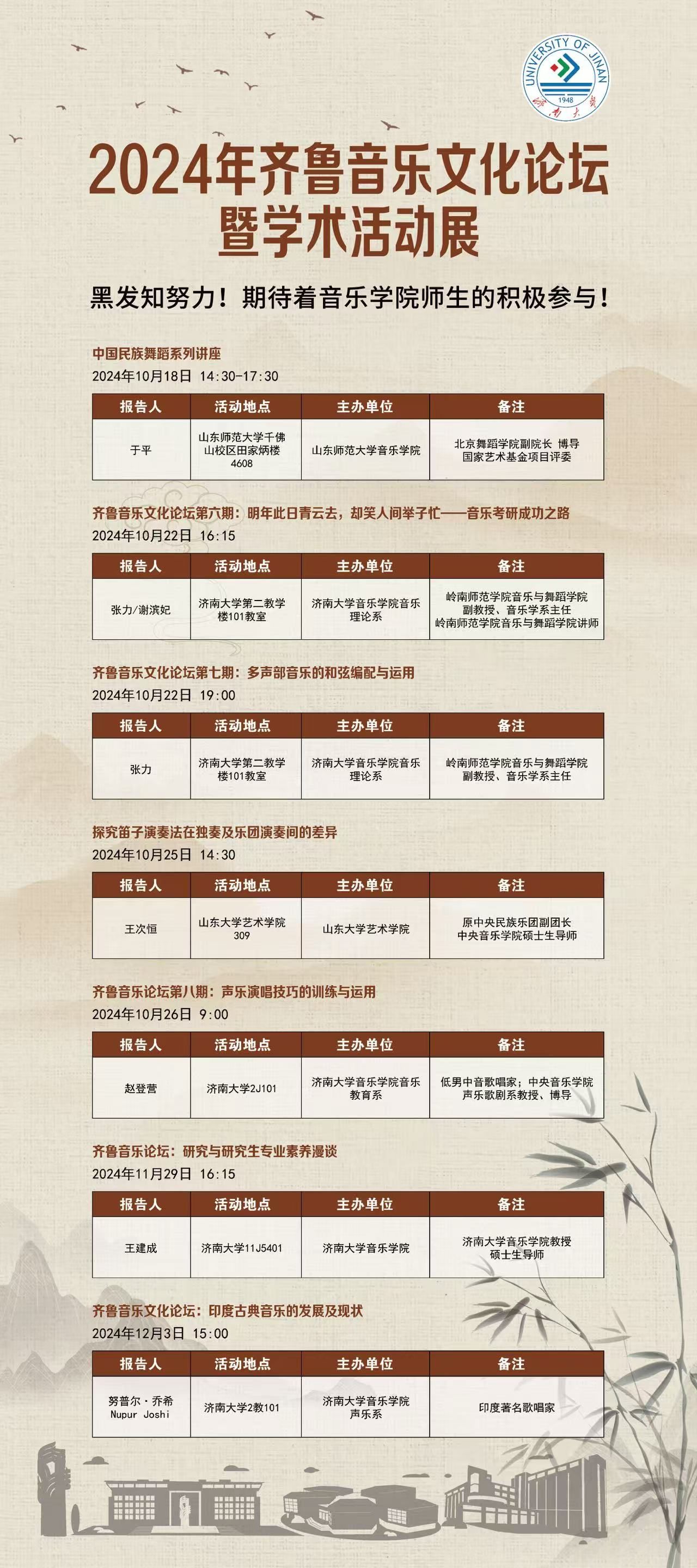 为营造浓厚的学术、科研、教研氛围,提高91视频 教学、科研水平,提升人才培养质量,进一步加强学科专业建设,增强对外学术交流的积极性,充分调动学生参与学术活动的积极性,91视频 2024年锐意打造学院学术品牌——齐鲁音乐文化论坛,在各系和兄弟学院的共同努力下,学院已成功举办齐鲁音乐文化论坛六场,秋季继续开讲,计划全年举办二十场。期待对齐鲁音乐文化感兴趣的广大师生积极关注、积极参与!