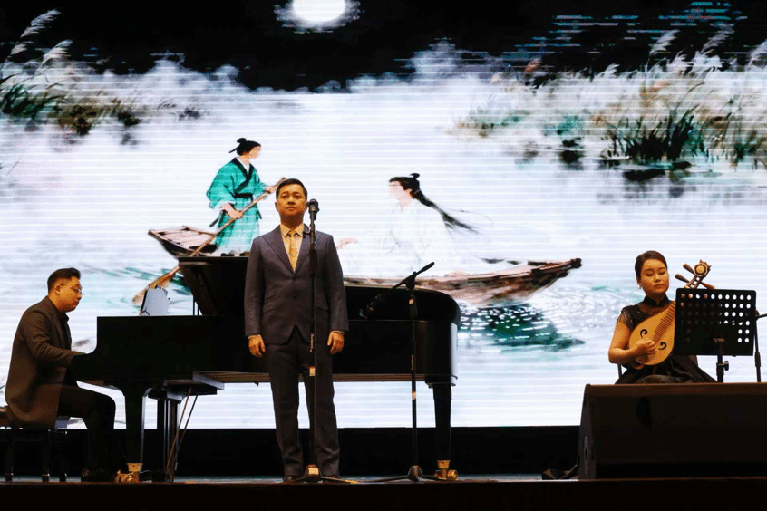 2012级声乐表演方向本科生、2016级音乐表演方向研究生、2022级韩国岭南大学博士研究生张继超声乐演绎《来香巴拉看太阳》《爱永在》,向观众传递爱与希望。2011级音乐表演方向本科生、2015级音乐表演方向研究生、音诗雨轩艺术工作室主理人黄艳柳琴弹奏《梧桐雨》,为我们编织静谧浪漫氛围。