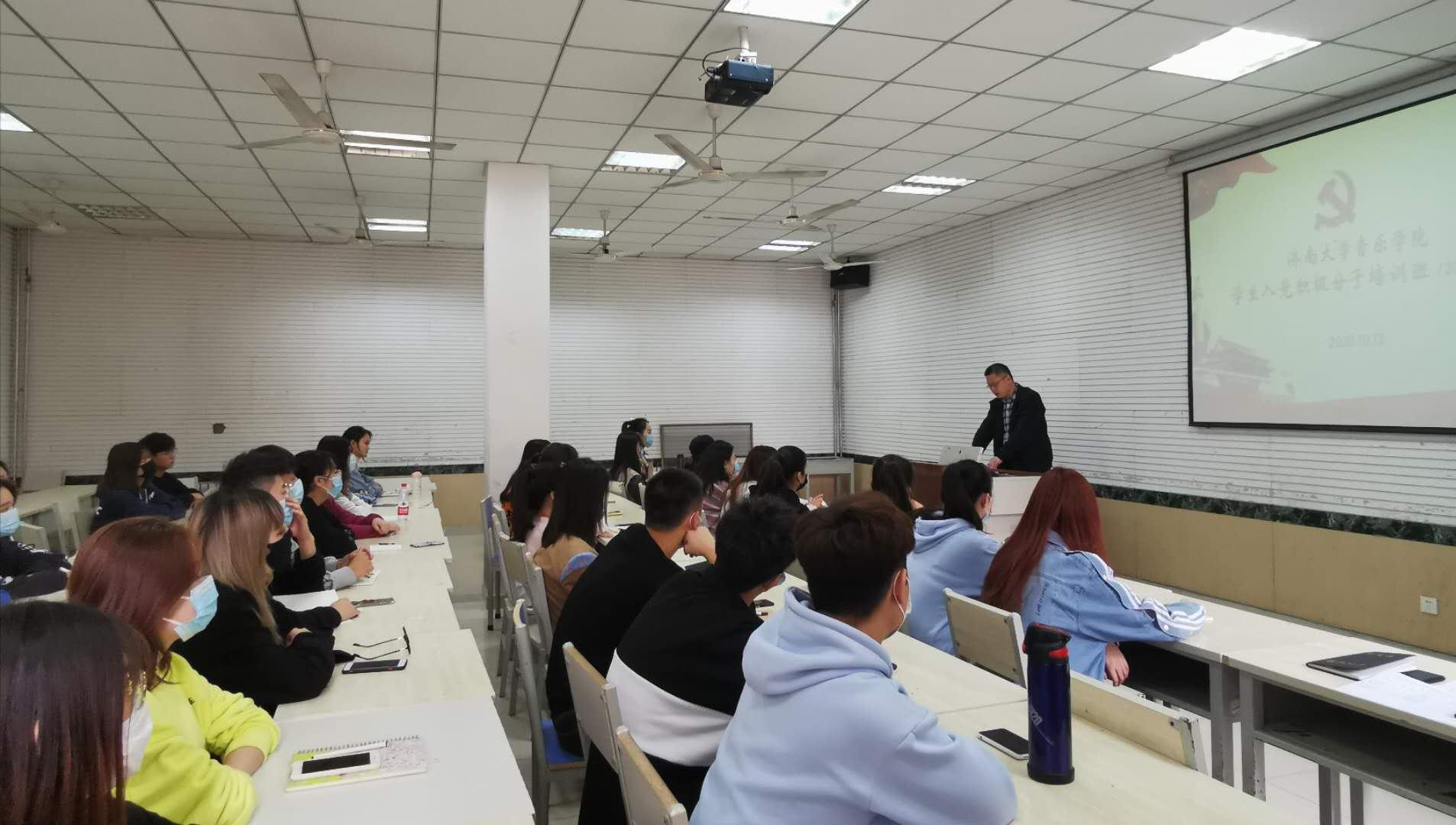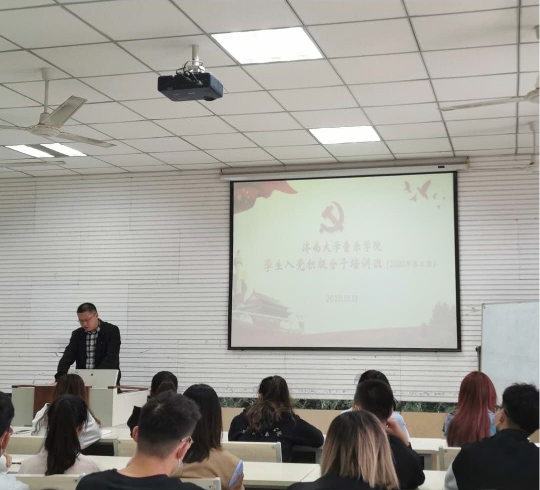 下半年入党积极分子培训班开班仪式在第一多媒体教室举行,学院党委书记刘振为新一期入党积极分子讲授专题党课。学办主任、学生党支部书记马媛老师主持开班仪式。
