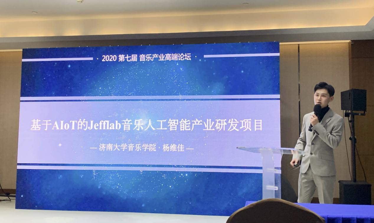 研究生杨维佳在“数字时代的音乐传播”学术分论坛部分进行了《基于AIoT的Jefflab音乐人工智能产业研发项目》的主旨发言,以音乐人工智能产品界定、AIoT三大产业方向与团队背书三部分为主轴,结合音乐人工智能产品演示与项目重难点核心技术剖析,从Jefflab产品出发,充分展示了人工智能音乐实验室研究成果如何在市场应用端口的落地。此研发项目是在91视频