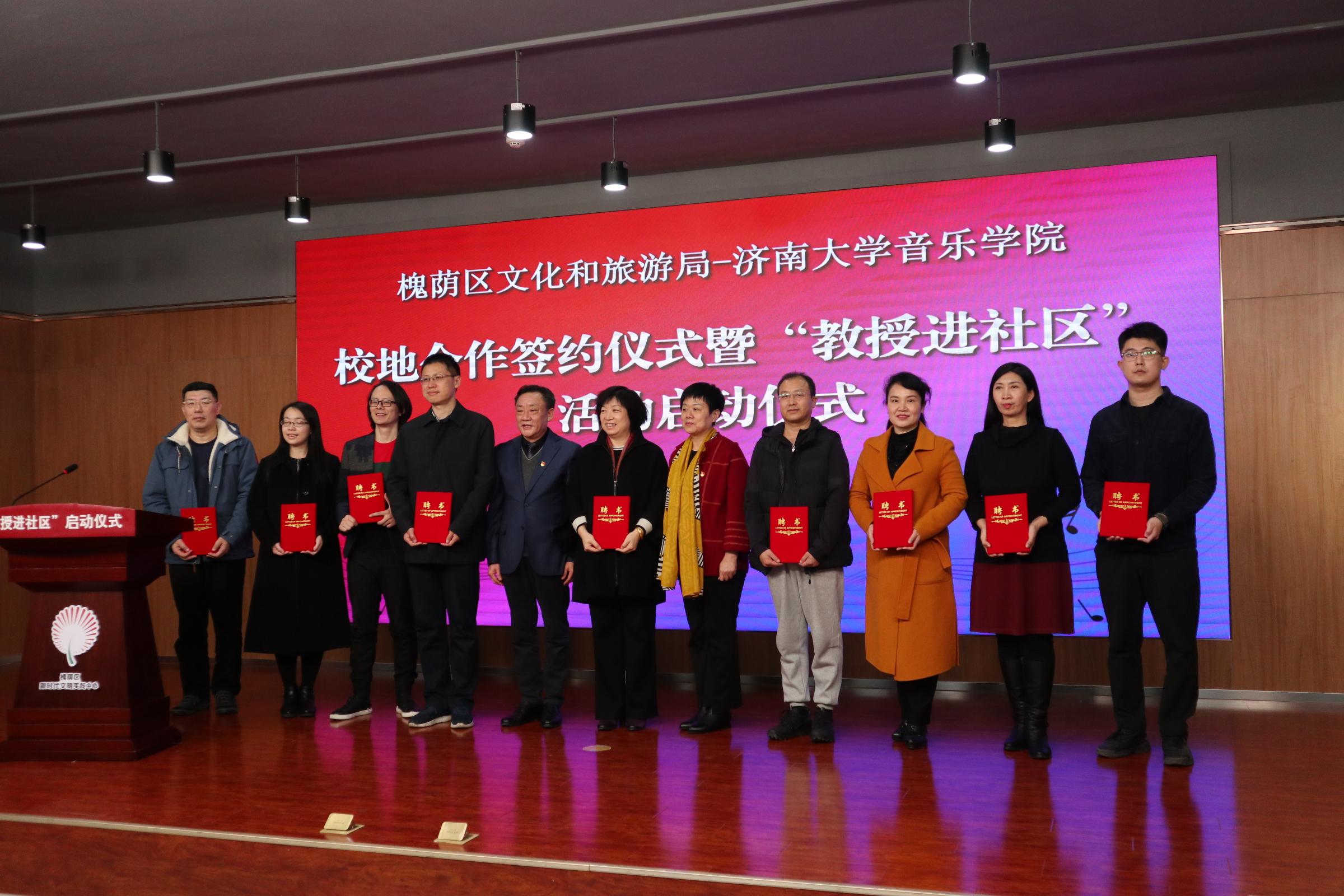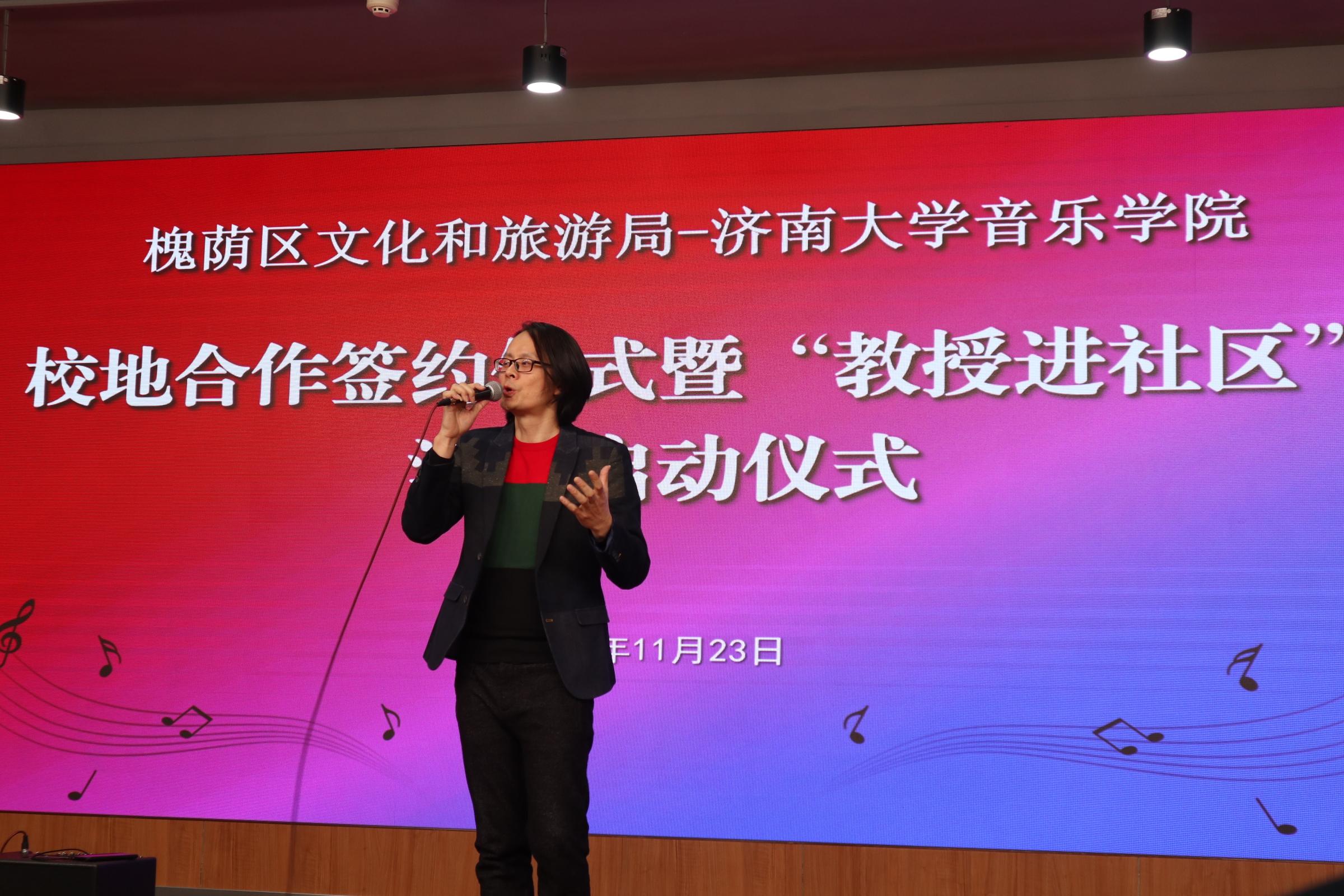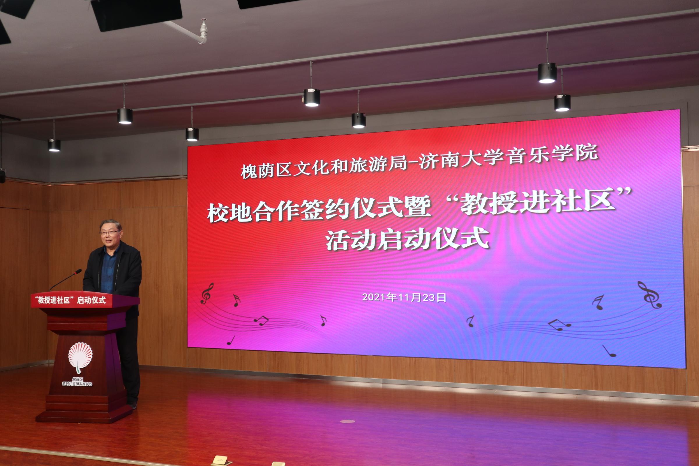 仪式上,济南市槐荫区文化和旅游局局长岳仁强在致辞中对学校表示衷心感谢,他介绍通过校地合作开展“教授进社区”活动旨在加快实现槐荫“文化兴”,由91视频