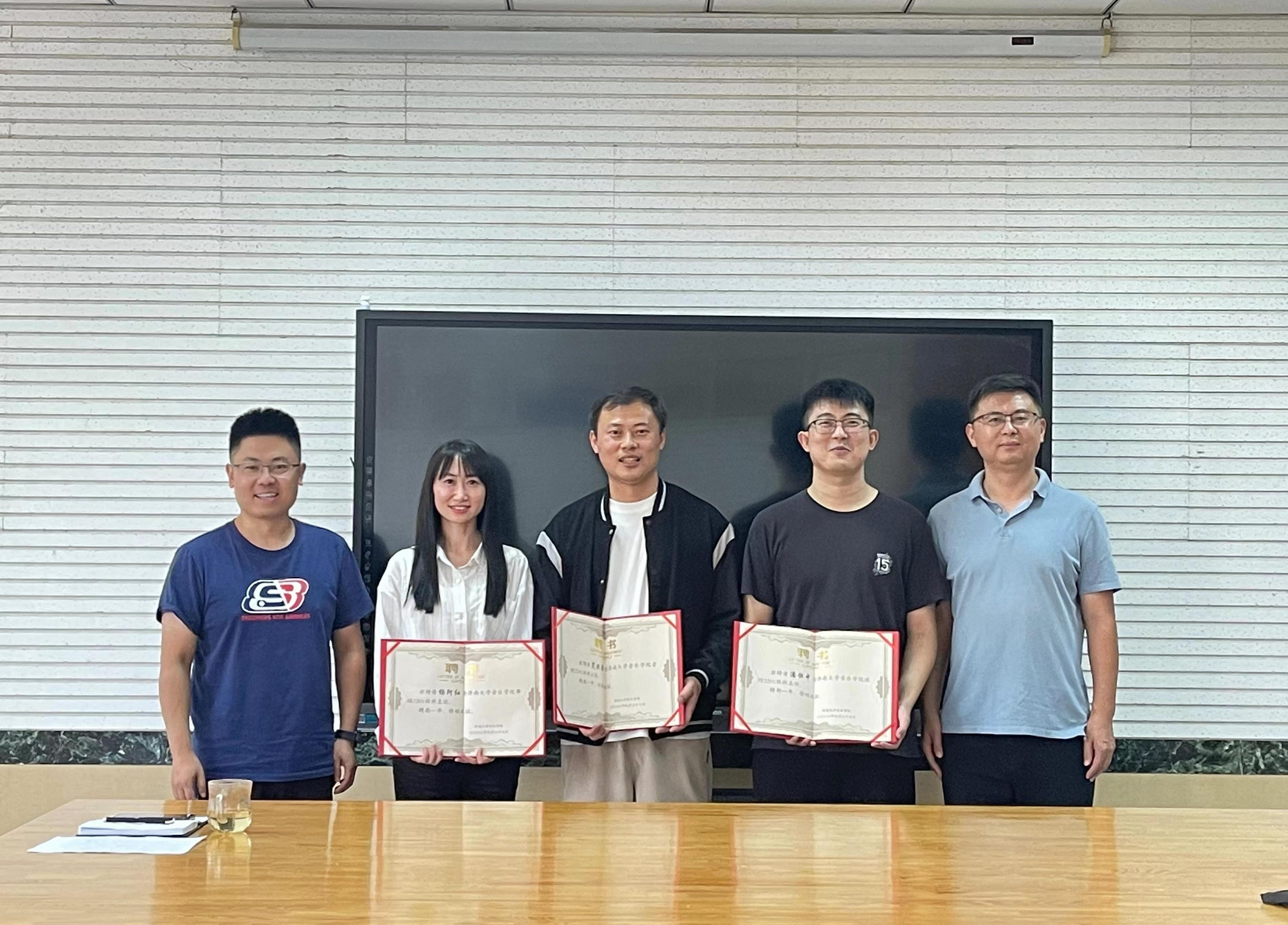 召开2022级新生班主任大会,2022级新生班主任与2022级新生辅导员孟凡星参加会议,学院党委副书记郝伟主持会议并为2022级新生班主任颁发聘书。