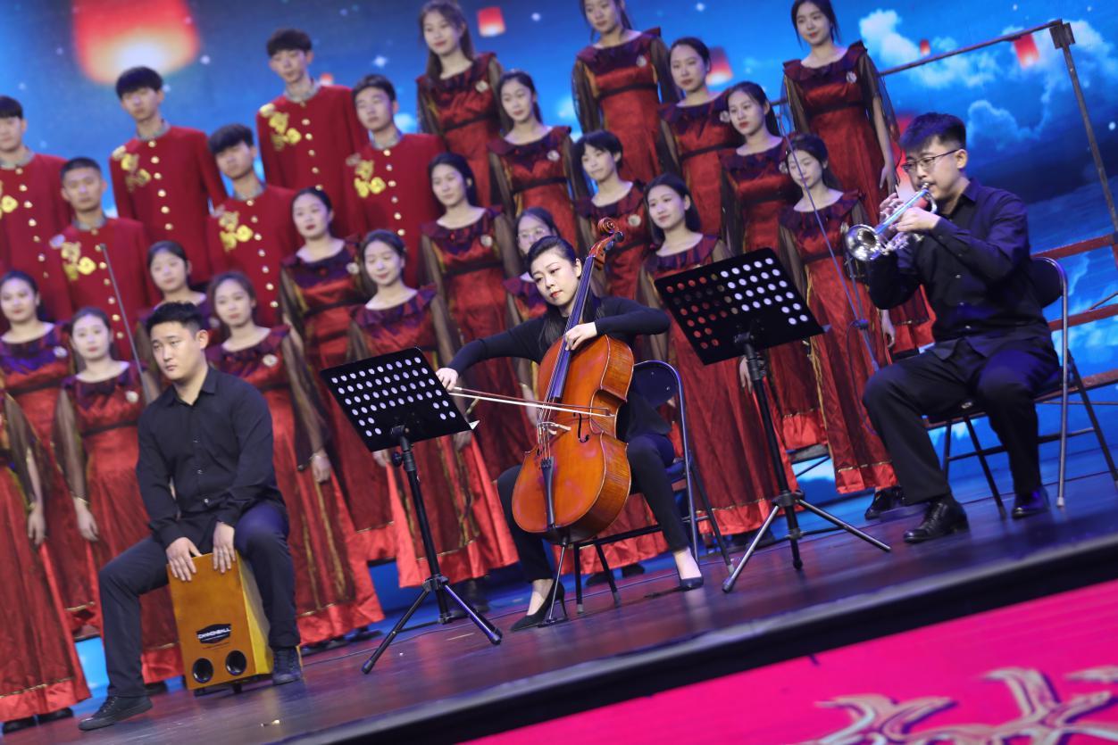 师生积极准备,紧紧围绕“喜迎二十大 心声献给党”主题进行编排,选取了《如愿》作为表演曲目。歌曲表达了对祖国建设者们的敬意与怀念,展现了中华民族自强不息、艰苦奋斗、代代相传的优秀传统。全曲在合唱的基础上融入室内乐与打击乐的元素,通过温暖的歌声、细腻的管弦乐协奏,抒发着当代青年大学生的爱党之情、爱国之心。