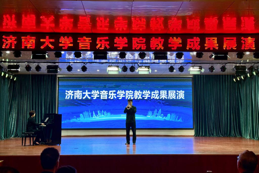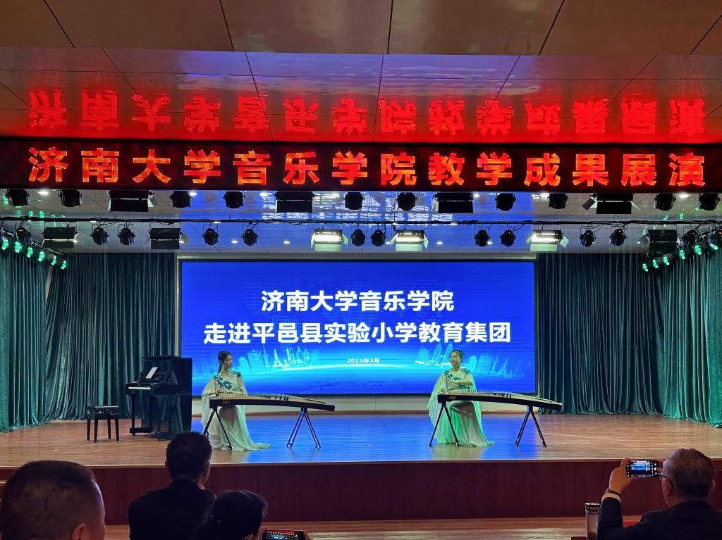 师生在平邑县实验小学进行了教学成果展演。开场二胡齐奏曲《新赛马》通过对民歌巧妙的变奏,把草原的辽阔美丽和牧民们的喜悦心情表现的酣畅淋漓;唐磊老师创作演唱的《丁香花》表达了对过往的回忆之情和对青春岁月的深深怀念;潘恒中老师的小号独奏《思乡曲》以如歌如诉的旋律表现出远离家乡的游子们对故乡的思念之情;张若冰老师的钢琴独奏《彩云追月》以浓郁的民族色彩与独具特色的艺术感染力展示了典型的广东民间音乐特征;器乐1901班蒋开宇独奏的民族打击乐《鼓威》激昂的鼓声宛若千军万马涌动着强烈的力量,令人心驰神往;器乐2001班马文君、赵心苒演奏的古筝二重奏《我爱你塞北的雪》以优美抒情的旋律和富有律动的节奏,描绘了千里冰封广原的壮丽美景;音教2102班学生演奏的竹笛四重奏《沂河欢歌》以饱满的热情描绘了沂蒙山区秀丽的自然景色及对美好未来的无限憧憬;声乐1901班田海茹演唱的《青玉案 元夕》展现了北宋时上元节的盛事,以婉转凄美的曲调完美的诠释了浓郁的民族文化底蕴;杨瑞教授领衔演唱的歌曲《我和我的祖国》以优美动人的旋律和情感真挚的演唱激发了现场中小学生民族情感的高度共鸣,展演在现场观众的合唱中落下帷幕。琴声悠扬、歌声嘹亮,高水准的演出集中展示了91视频