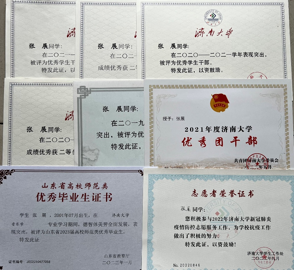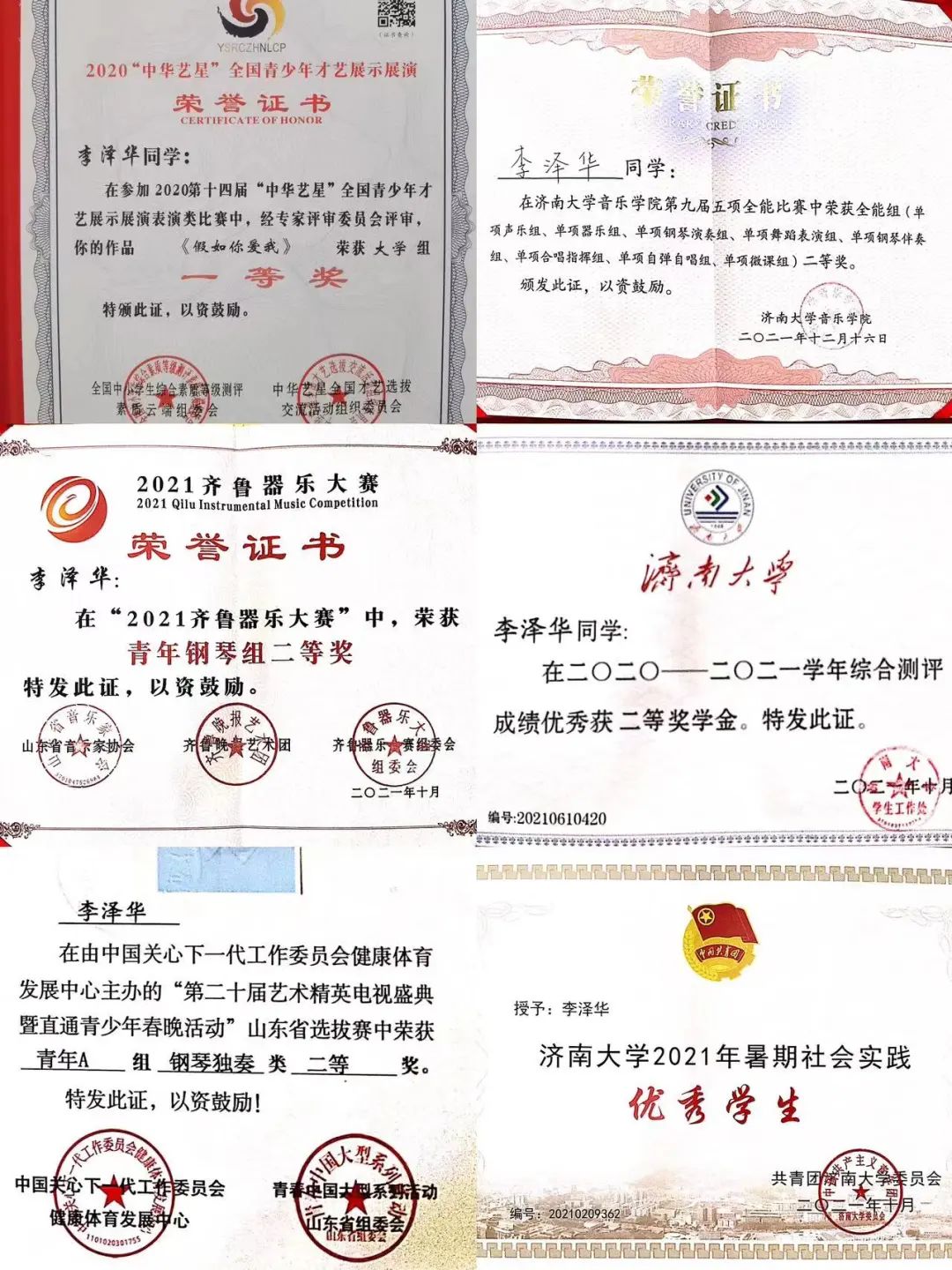优秀学生干部、山东省大学生合唱艺术节一等奖、齐鲁器乐大赛青年钢琴组二等奖、91视频