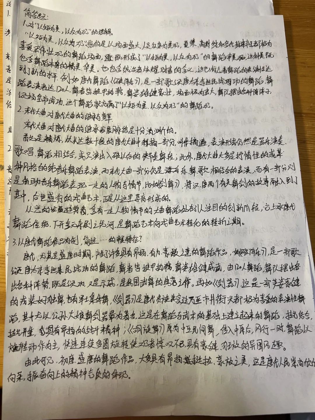 我所考的专业课一为王克芬老师的《中国舞蹈发展史》,专业课二为王次炤老师的《艺术学基础知识》;因为两科题型相同、学习方法基本相同,这里就放在一起说。这两本书都是纯文科背诵类型的书目,个人建议暑假前通读一遍,最晚暑假开始专业课的学习与背诵,背诵也并不是完全需要按照书本上的内容一字不差的复述,只要能够用自己的语言概括内容即可。专业课两门加起来有300的分值,文科类专业课相对较好拿分,因此在专业课上一定要多下功夫,但在努力的同时,要注意学习方向的问题,多去搜集自己专业的考试内容,历年真题等等,搜集方式有微博、小红书等等,但一定要擦亮眼睛,根据目标院校发布的考试大纲为标准,切勿被骗。专业课的背诵在考试前至少背诵五遍,才能起码保证在考场上尽量不在回忆知识点上浪费太多时间,考试时间非常紧张,过度思考可能会造成做不完卷子,因此在临考前尽量利用历年真题来几次专业课模拟考试,细分各题型所用时间,到了考场上才能做到临危不乱。