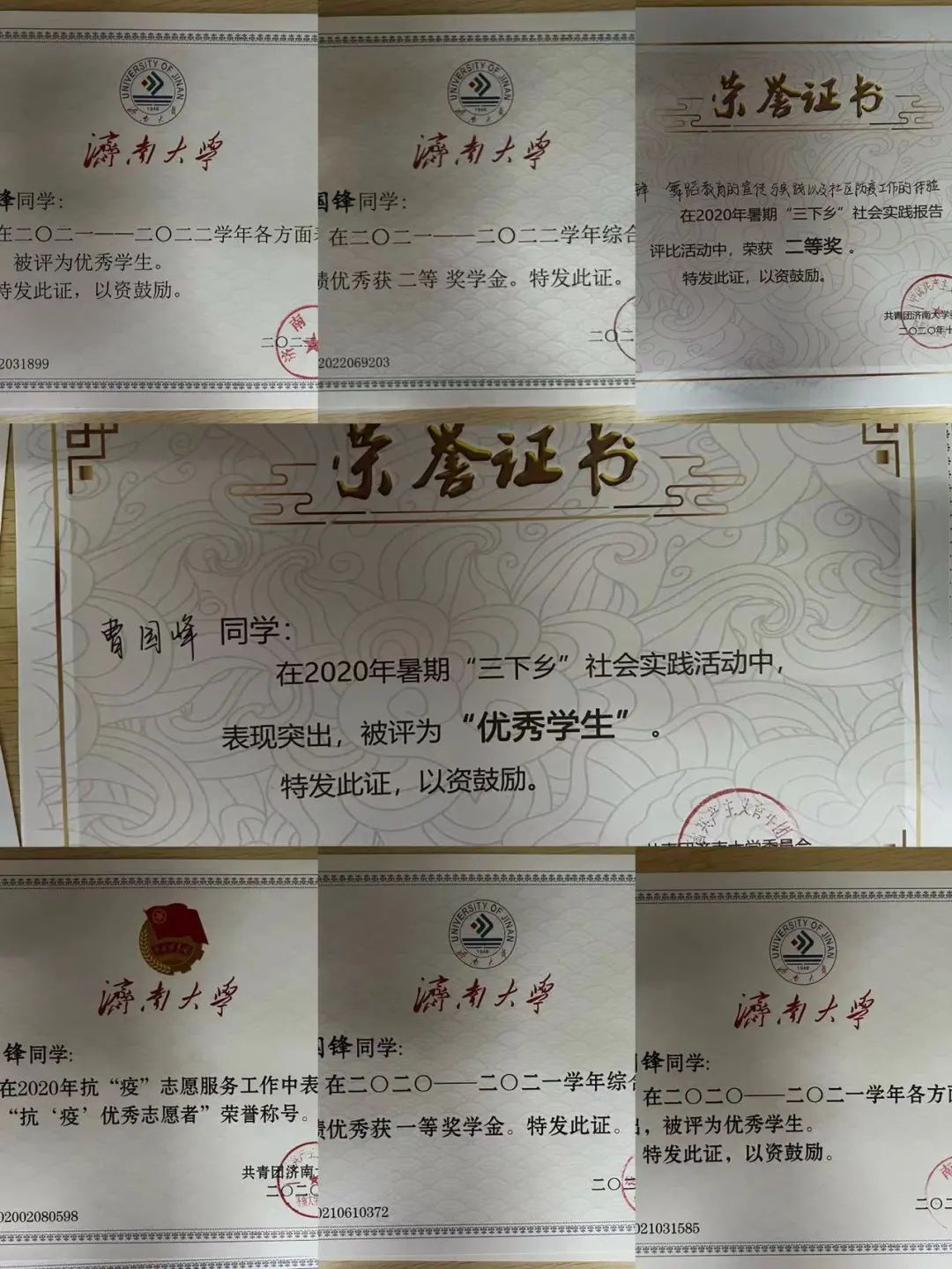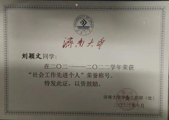 2021- 2022学年获“校级二等奖学金”并评为“优秀学生”