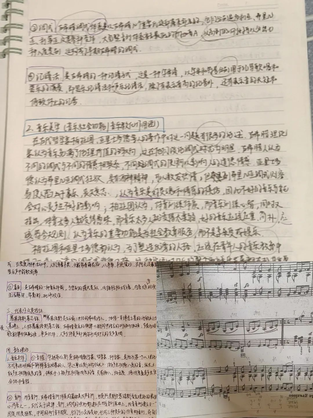 我的专业课包括中西音史和曲式分析,专业课是从暑期开始学习的,是直接找的目标学校的老师进行学习(建议找目标院校老师或学长学姐)。中西音史学习就是靠背诵,一定要背到滚瓜烂熟。背诵方法我是上课之后整理出来,每次背诵前会略读一遍大概对这个题有个框架和画出关键词,比如人物背诵时,框架基本都是出生年月+生平+影响,。这个对我来说比较有用,大家可以按照自己喜欢轻松的方式进行记忆。曲式分析,主要就是在掌握基础知识后大量的做题,做的多了不管是复三、奏鸣还是回旋奏鸣都会变得很简单,要相信自己的第一感觉。