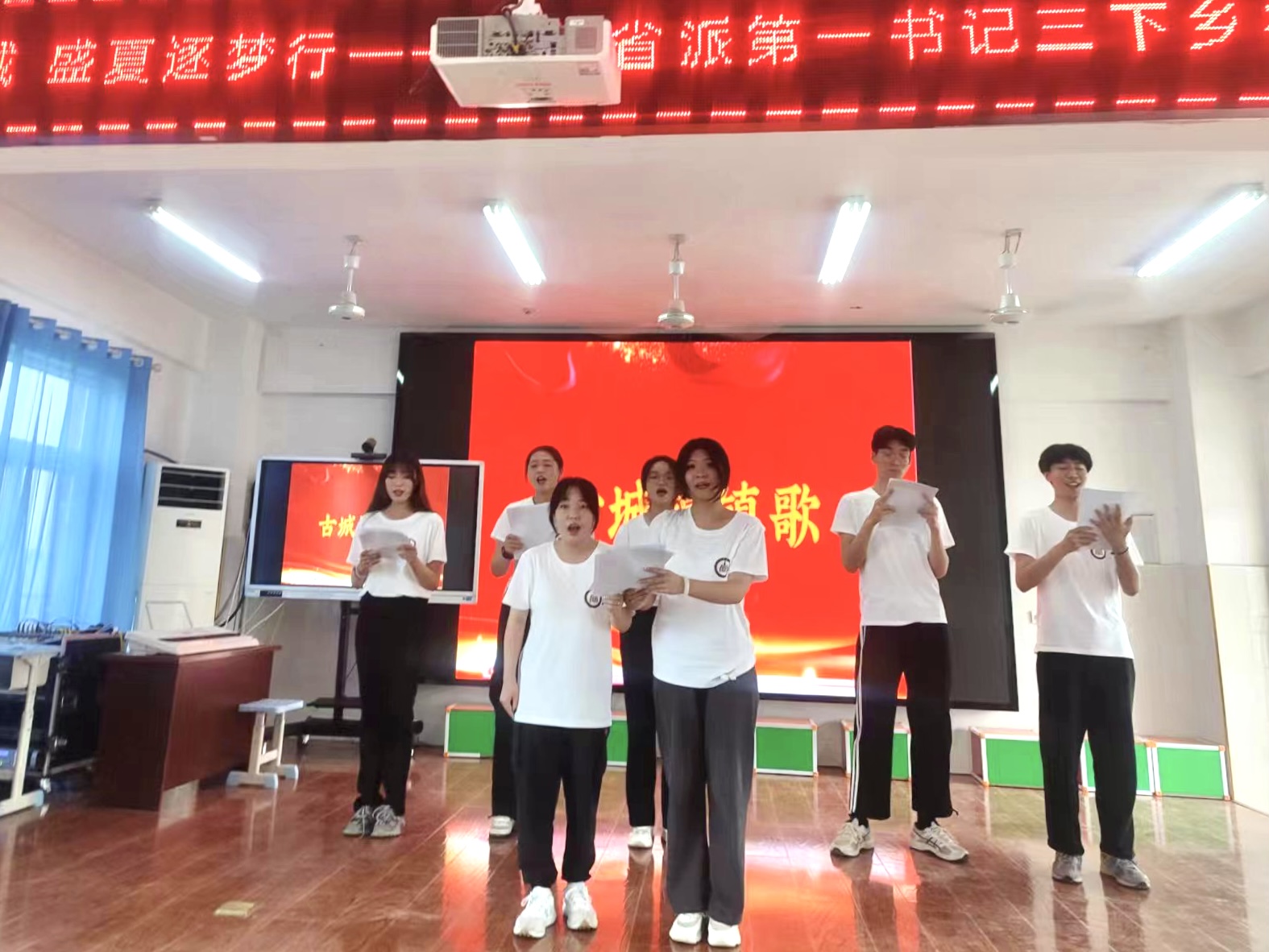 青春,两个跳动的音符,奏出最动人的音乐;青春, 两个炽热的字眼 ,谱写出最振奋人心的篇章;青春,两种绚丽的色彩,打造出最灿烂多彩的童年。活动结束后,举办了以“‘乡’约古城镇,盛夏逐梦行”为主题的汇报演出,孩子们以饱满的热情和积极向上的精神面貌向大家展示了《少年中国说》、《水调歌头》、《有你就幸福》、《萱草花》等节目,最后实践团集体演唱的由古城镇第一书记工作组协助创作的《古城镇镇歌》将演出推向了高潮,此次文艺汇演的举办,给予孩子们一个真正张扬自我个性和勇气的舞台。也充分展示省派第一书记优势,与被帮扶学校一起,共同打造多方联动、富有活力的中小学美育新格局,为推动地方基础教育高质量发展作出积极贡献。