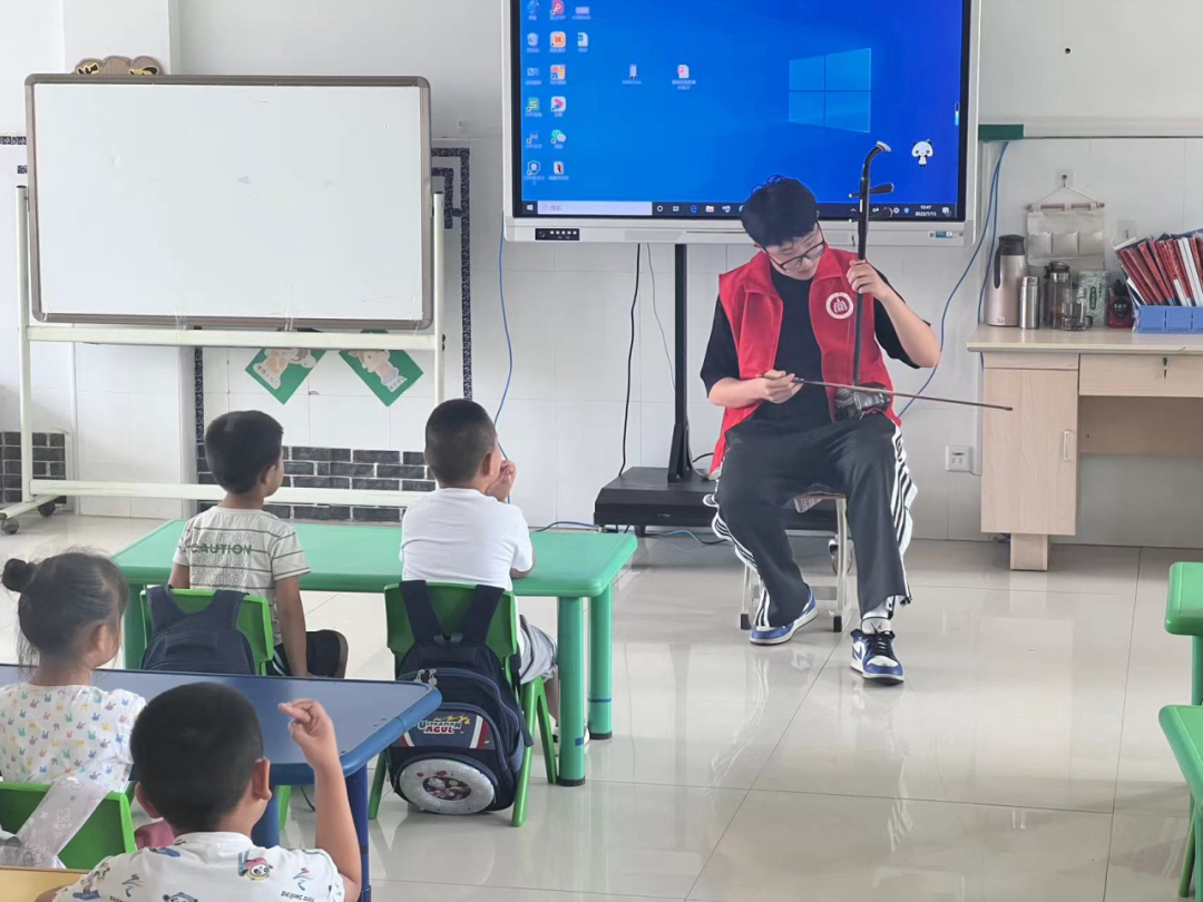 夏日骄阳拦不住青春的热忱,孩子们的笑容如同夏日凉爽的冰棍,将心灵沁的清清凉凉。志愿服务队在与祝阳镇镇政府进行对接之后,来到祝阳镇中心幼儿园,根据园长介绍,同时根据小朋友们的实际情况,志愿服务队制定了适合小朋友们的上课计划。经过与班主任的沟通和学习后,志愿服务队以“课程即游戏”的方式开设了基本乐理、合唱、器乐赏析舞蹈等课程。随着与小朋友们的深入交流与接触,我们不断改进,为小朋友们提供一个有特色、好吸收的趣味课堂,助力幼儿园一班一“特色”,一区一“探索”计划,将乡村文化振兴融入到行动中,不断为美好乡村建设与振兴添砖加瓦。