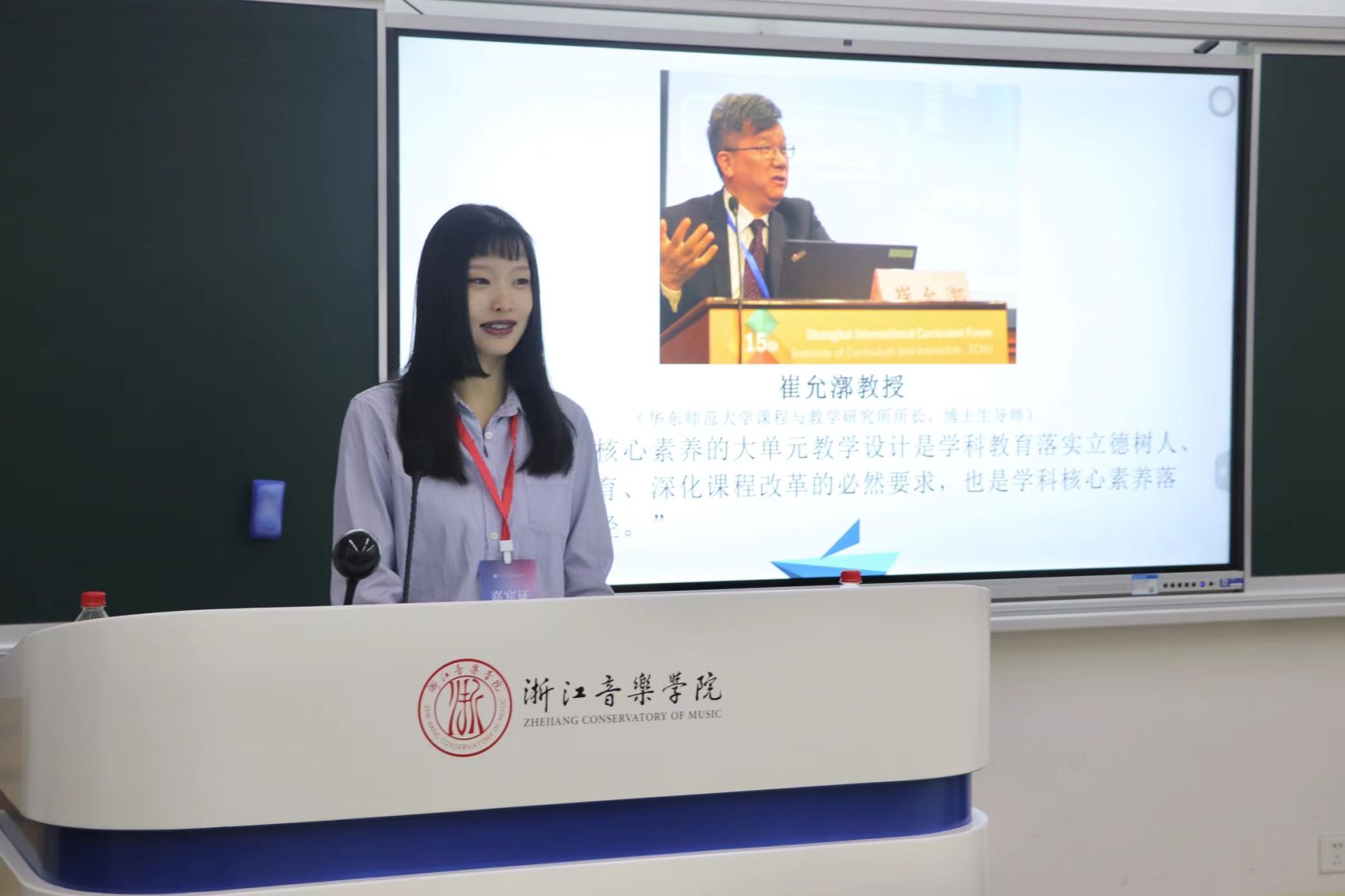 2021级音乐教育方向研究生吴爽投稿的论文《国内音乐大单元教学研究现状综述》经专家评审,在高校学生组论文评比中脱颖而出,受邀在高校学生论文宣讲专场中,进行主题发言。吴爽从国内音乐大单元教学的相关文献分布、理论研究与实践研究三方面研究现状进行梳理,提出未来研究要切实理清大单元概念、统建知识架构;增强理论研究、推动团队建设;推动音乐大单元教学模式落地实施等美好愿景。吴爽同学的选题新颖,逻辑清晰,获得与会代表与专家的高度肯定,显示了91视频
