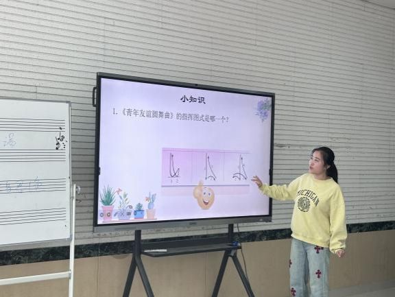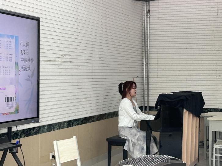 随后六位同学依次登台,进行了精彩的微课教学分享。其中,王慕盛、丁熙恩、张亦驰三位同学以人音版五年级下册的《迷人的火塘》为课题,进行了富有深度的微课展示。他们不仅认真研究了课程内容,还深入挖掘了歌曲背后的侗族文化元素。在教学中,三位同学巧妙地将音乐与文化相结合,引导学生通过歌曲《迷人的火塘》感受侗族人民的热情与纯朴。他们不仅传授了音乐知识,更通过歌曲传达了侗族文化的独特魅力,使学生们能够更深入地了解少数民族文化,增强文化自信心。紧接着,李叶萱、张金戈、王文萱三位同学以人音版七年级上册的《青年友谊圆舞曲》为课题,进行了同样精彩的微课教学分享。他们针对圆舞曲的风格特点,进行了深入剖析,引导学生们准确把握学习要点。在他们的教学中,不仅注重知识的传授,更强调了音乐感受与欣赏的重要性。他们通过引导学生们感受圆舞曲的优雅与魅力,培养了学生的音乐鉴赏能力,同时也激发了学生们对音乐的热爱之情。六位同学的微课教学分享,不仅展示了他们较为扎实的教学基本功,也为与会师生提供了一个相互学习、共同进步的平台。