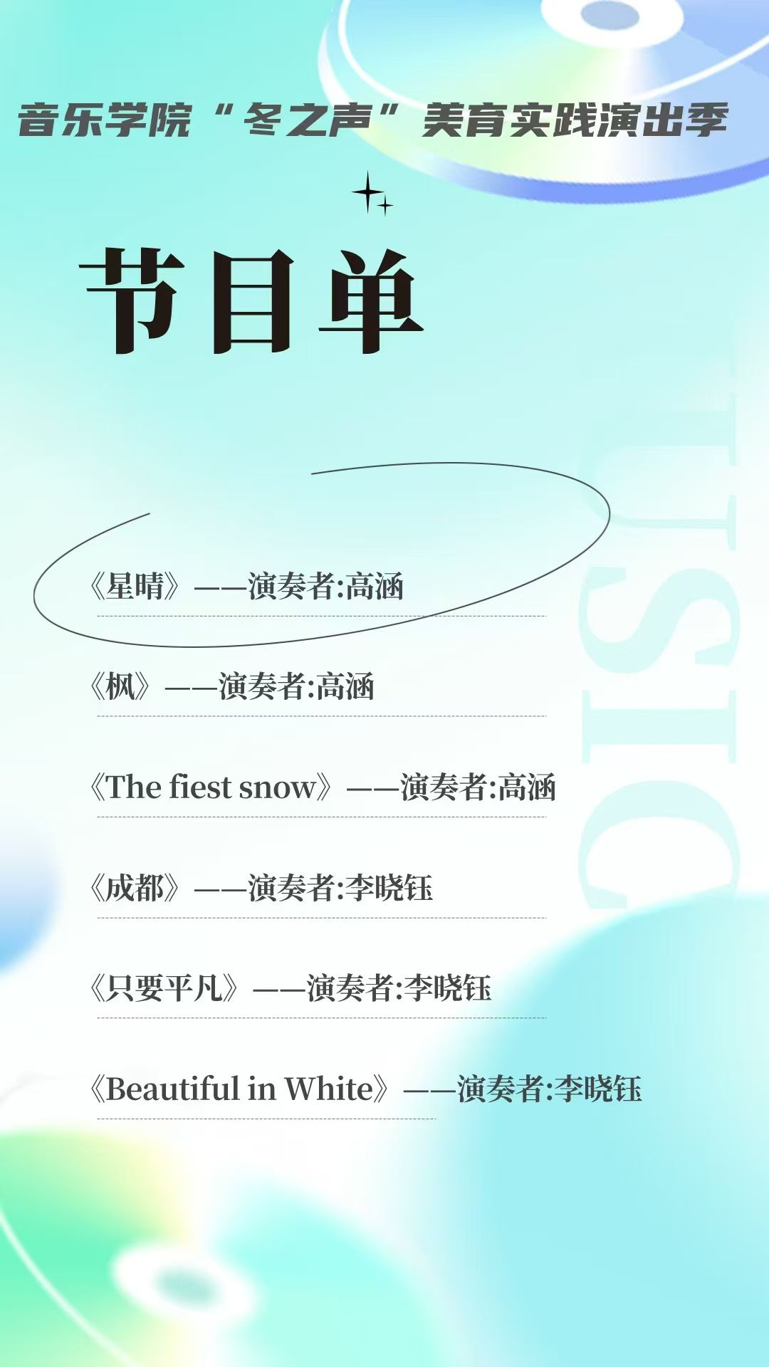4位优秀硕士研究生倾情出演,曲目皆为大家所熟知的流行金曲,《匆匆那年》《假如爱有天意》《只要平凡》《小美满》《起风了》.......