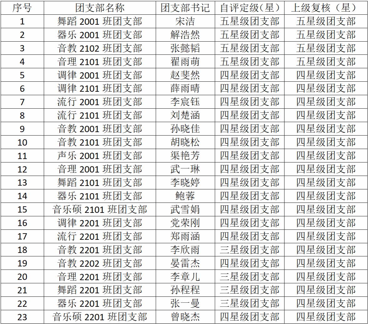 经团支部对标自评、自评材料审核及学院团委复核认定,91视频 2023年度团支部“对标定级”评定结果如下,现予以公示。