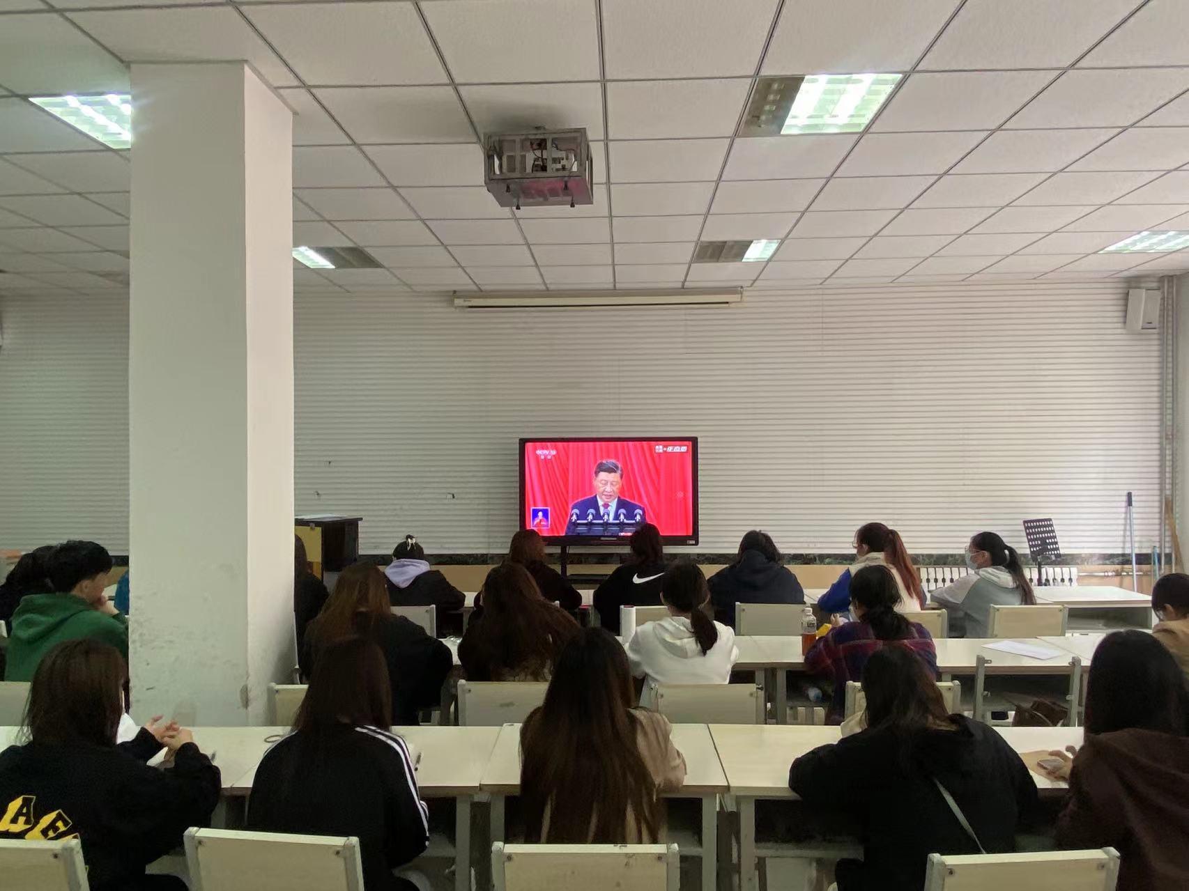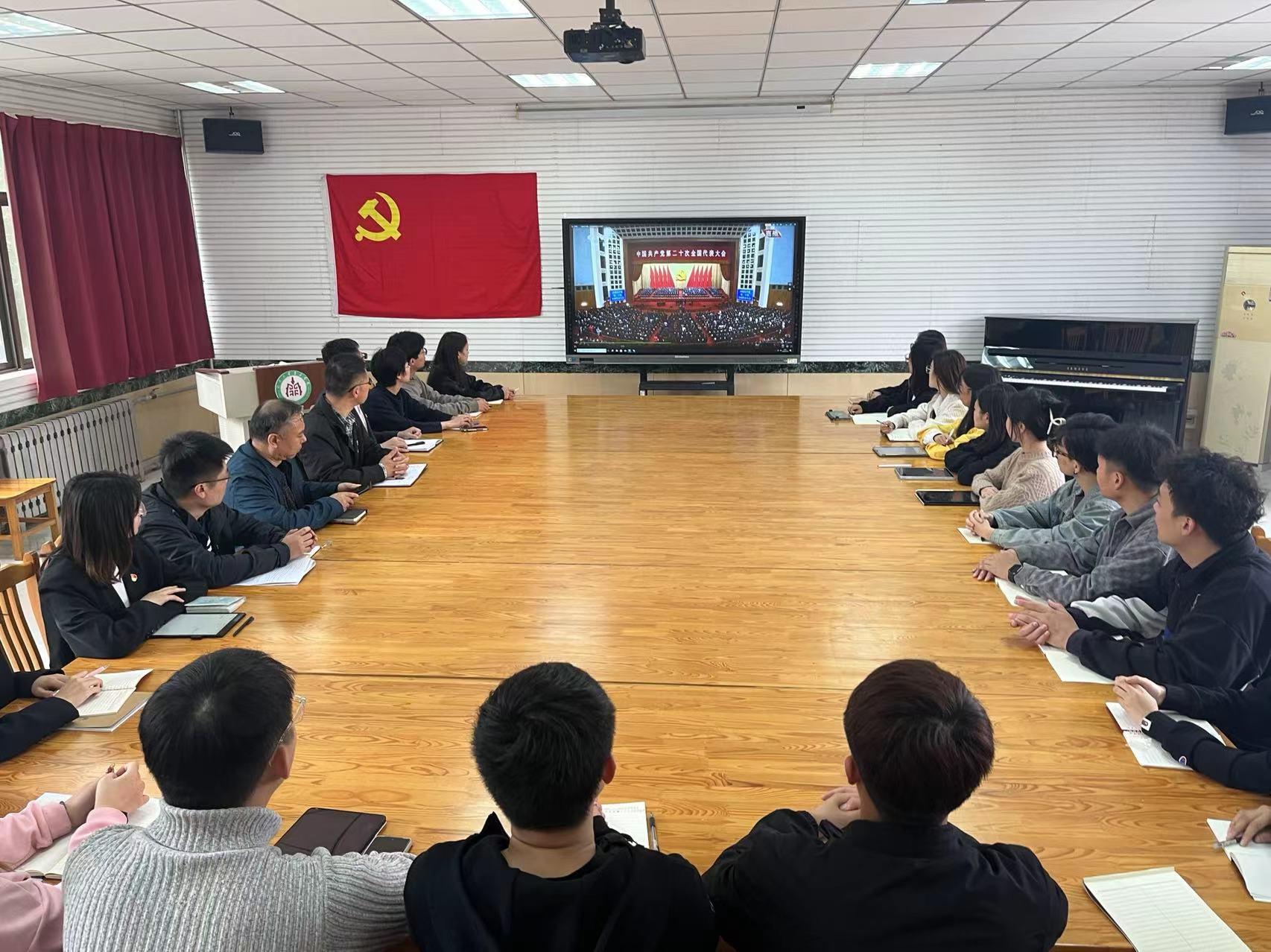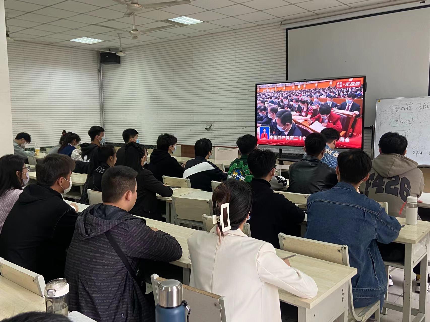 党委理论学习中心组、党支部书记以及在校正式党员和预备党员集中在研讨课教室集中收看党的二十大开幕实况,认真聆听、学习习近平总书记的报告。