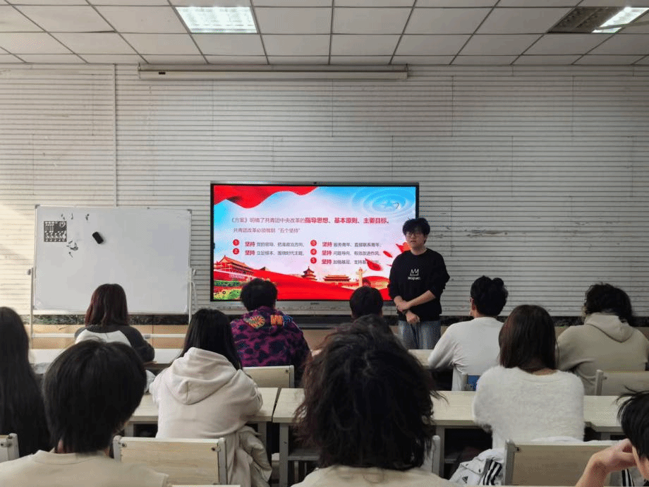 开展“深入领会团党全会精神,勇担新时代青年使命”主题宣讲活动。学院部分团员与青年干部参与此次活动,本次宣讲由院学生会团学部部长赵浚屹作为主讲人。