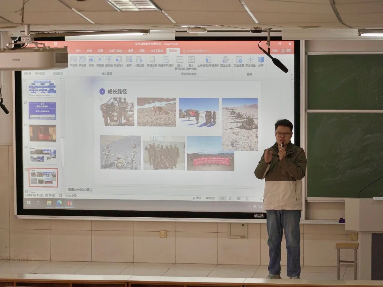 于2J104教室举办“2025届毕业生就业工作暨征兵宣传大会”。会议由2021级辅导员侯梓腾主讲,2025届全体毕业生参加。