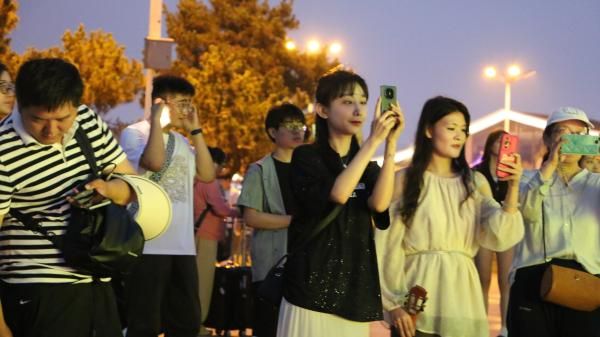 党委副书记、副院长董晓宁,五莲团县委副书记张丽娟、团县委副书记孙孔孟与万平口的市民游客一同观看演出。